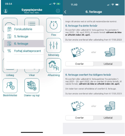 Anmodning om overførsel af overført 6. ferieuge skal ske via appen MinLøn eller Medarbejdernet.dk under MineValg -> 6. ferieuge. Løsningen er åben i perioden fra 1. december til 30. april.