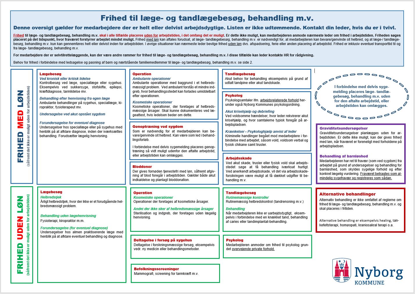 Frihed til læge- og tandlægebesøg, behandling m.v. samt fravær af familiemæssige årsager.