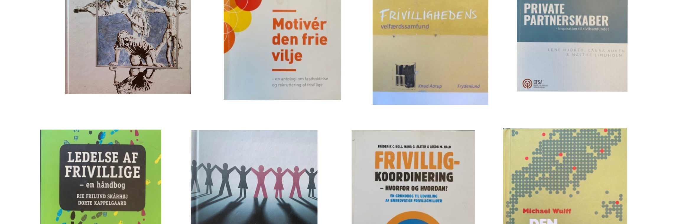 Nedenfor finder du en liste med et lille udpluk af bøger, der (udover henvisningerne i LÆS MERE under hvert af Guidens afsnit) giver indsigt i det frivillige område, samskabelse, partnerskaber og relaterede emner. Tillige har vi indsat et grafisk bibliotek med inspiration til videre læsning.