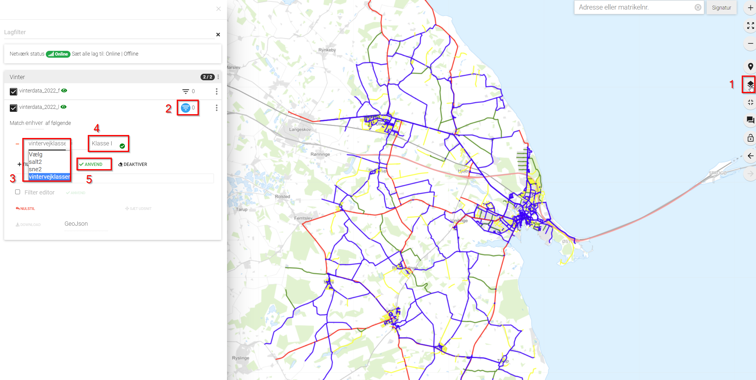 - Vælg Vinterklasse, Sne-ruter eller Salt-ruter
