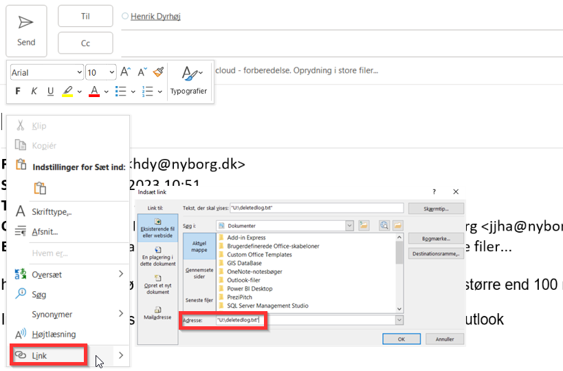 Det er ikke velset at vedhæfte store filer eller filer med fx cpr.nr. i emails.