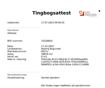 Herefter generes en pdf-fil - Screeningsrapporten indeholder nu også aktuelle servitutter og adkomst