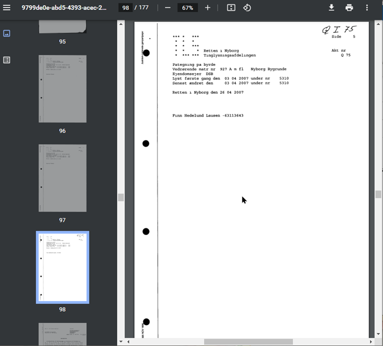 Det er tinglysningsretten, som har ansvaret for at fjerne personfølsomme oplysninger i den pågældende akt i deres system!