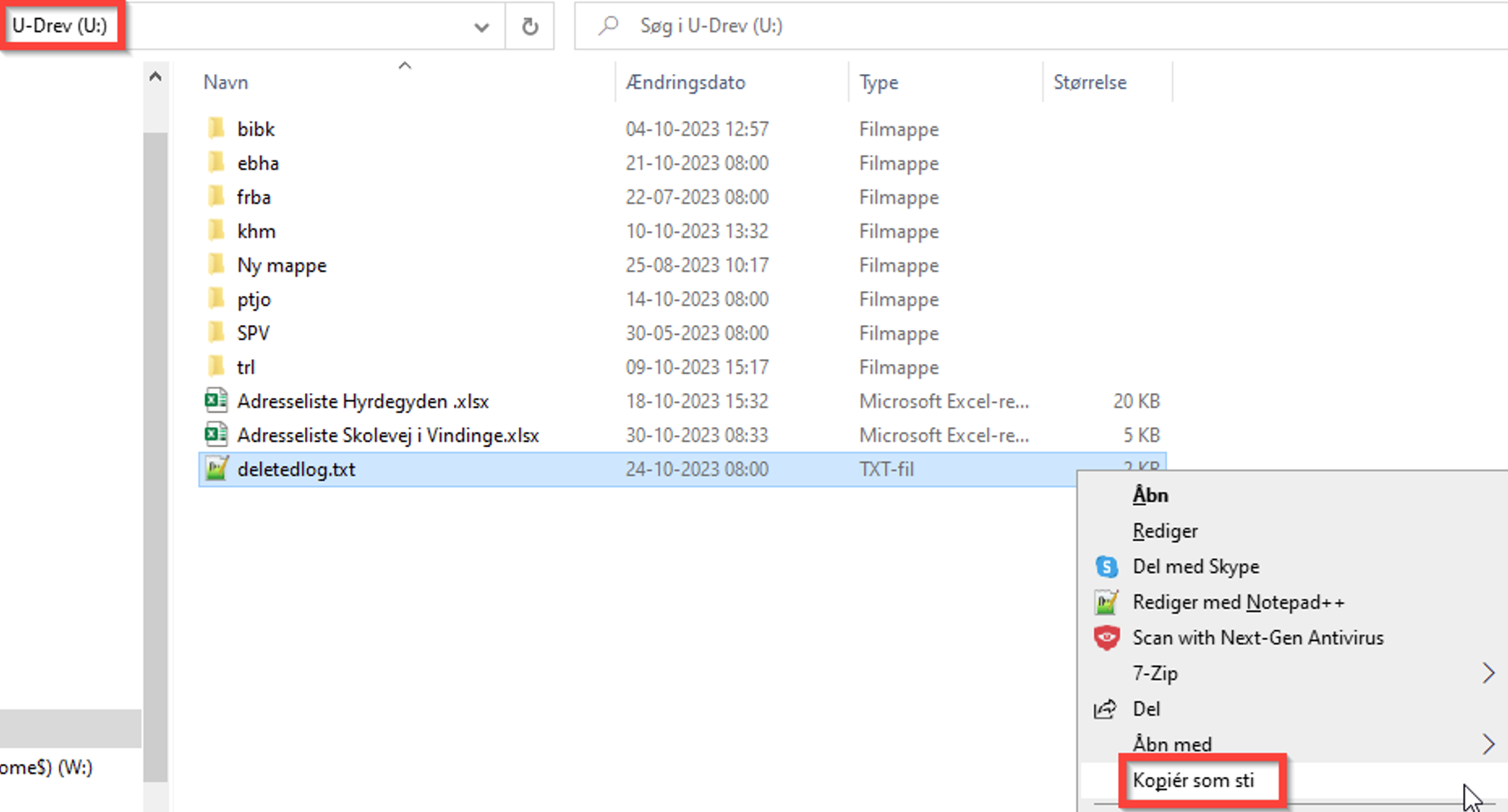 Alle filer, som placeres på U:\ bliver automatisk slettet efter 30 dage.