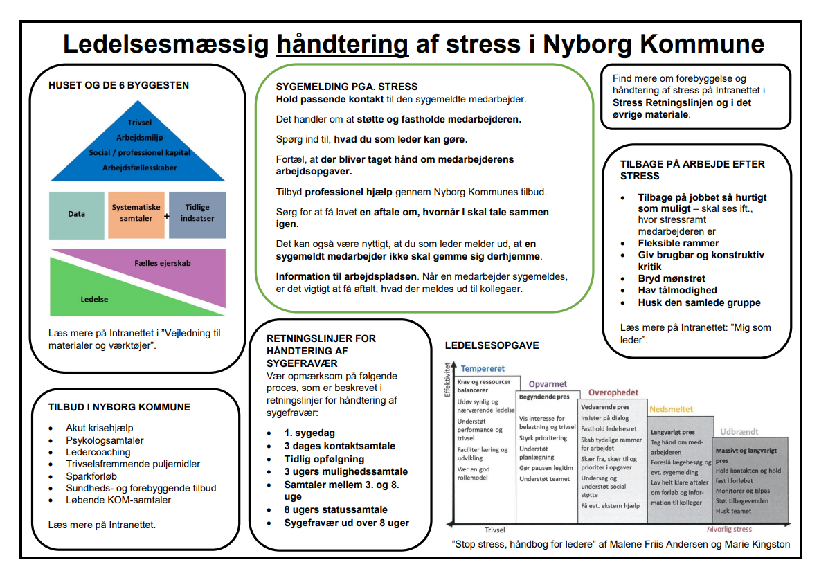 Retningslinjen, materialer og de tilknyttede værktøjer om forebyggelse af stress bygger på den nyeste viden om, hvordan ledelsen, arbejdspladsen og den enkelte medarbejder forebygger stress ved at samarbejde om at skabe trivsel på arbejdspladsen.