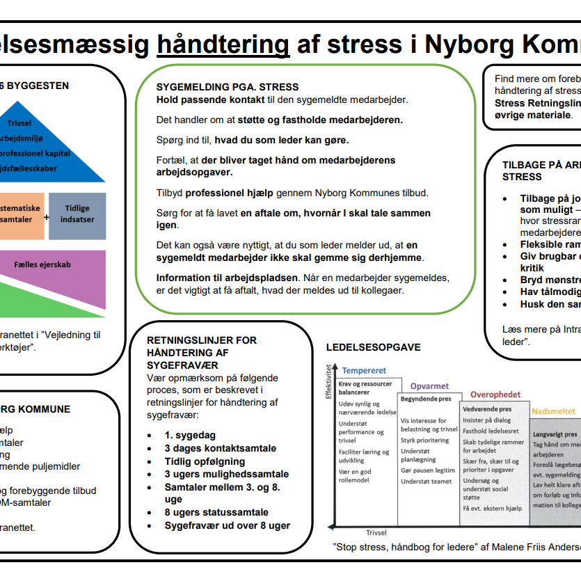 Her finder du retningslinen om forebyggelse af stress, og materialer om stress til leder, TRIO, kolleger og til den enkelte medarbejder.