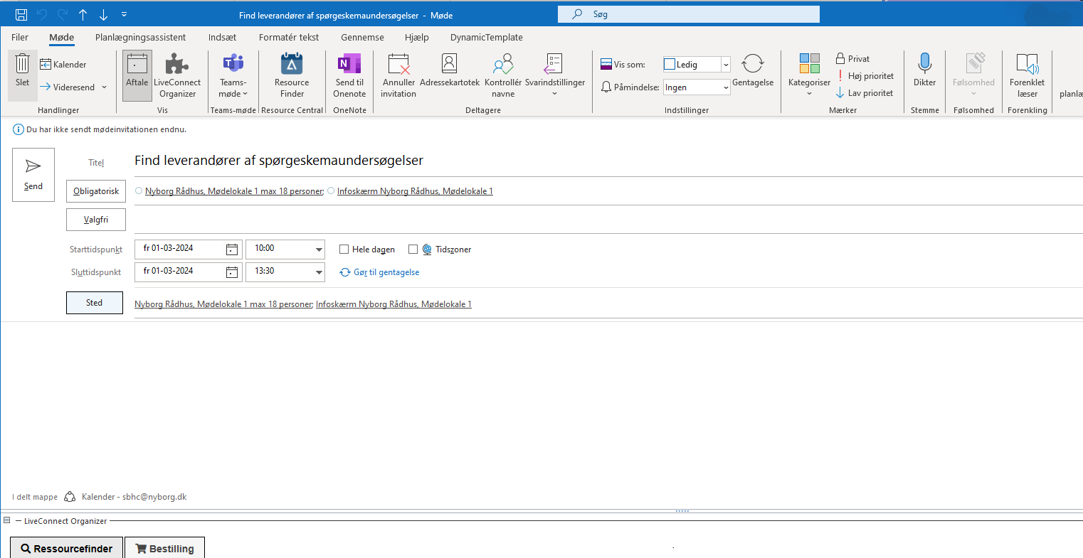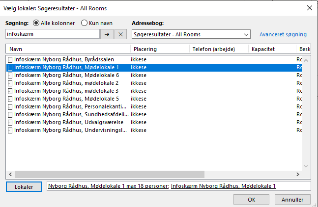 Hvis I vil have mødet til at fremgå på infoskærmene i forhallen på rådhuset, så udefrakommende mødedeltagere kan finde lokalet, skal I huske at booke både lokale OG infoskærmen, der hører til lokalet.